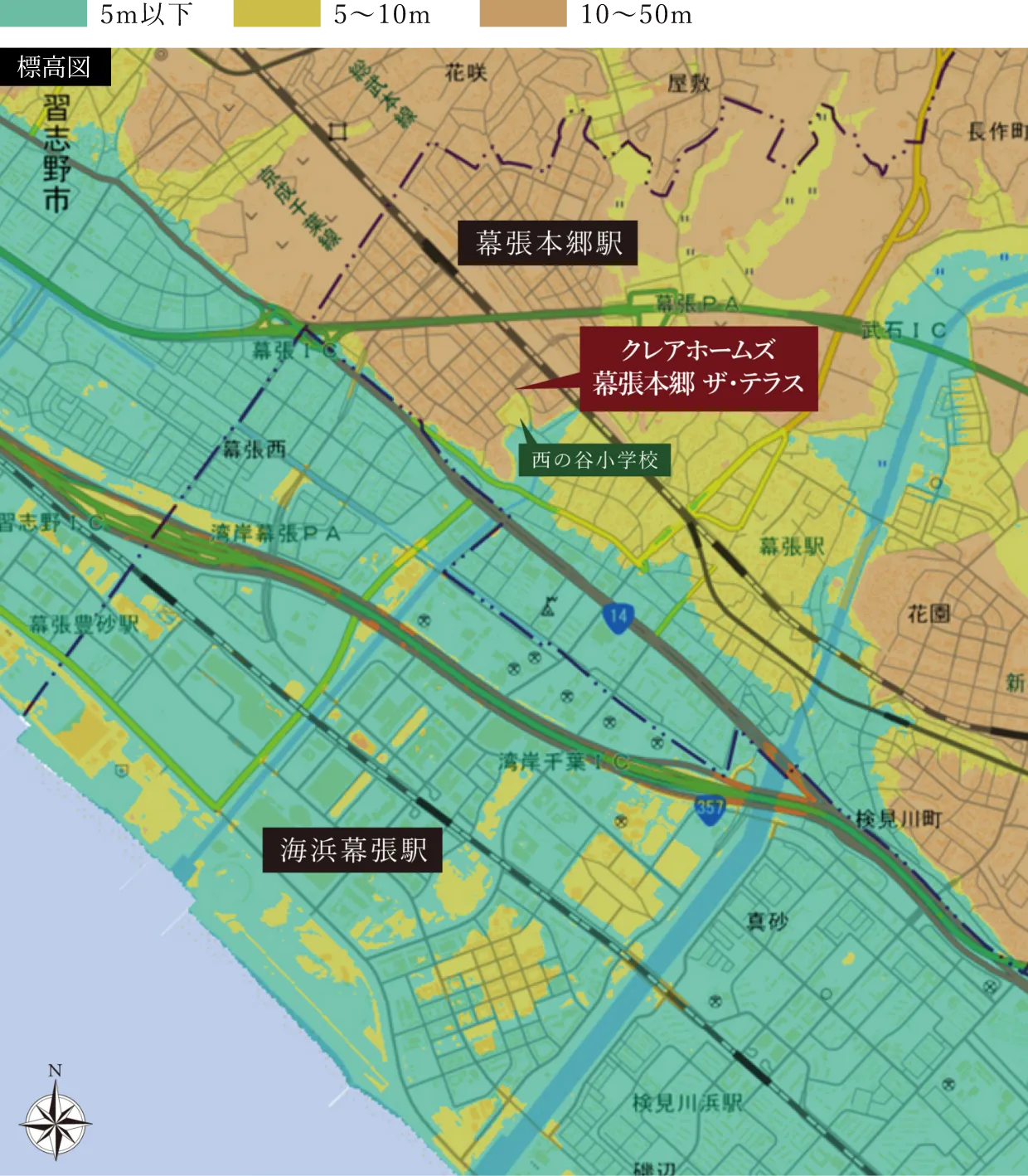 かつて海だった場所に、いまは都市のきらめきが広がる。そのすぐ隣には、長い時を重ねてきた下総台地の安らぎ。移ろうものと変わらないもの。その対比が暮らしを支えています。※出典:国土地理院HP