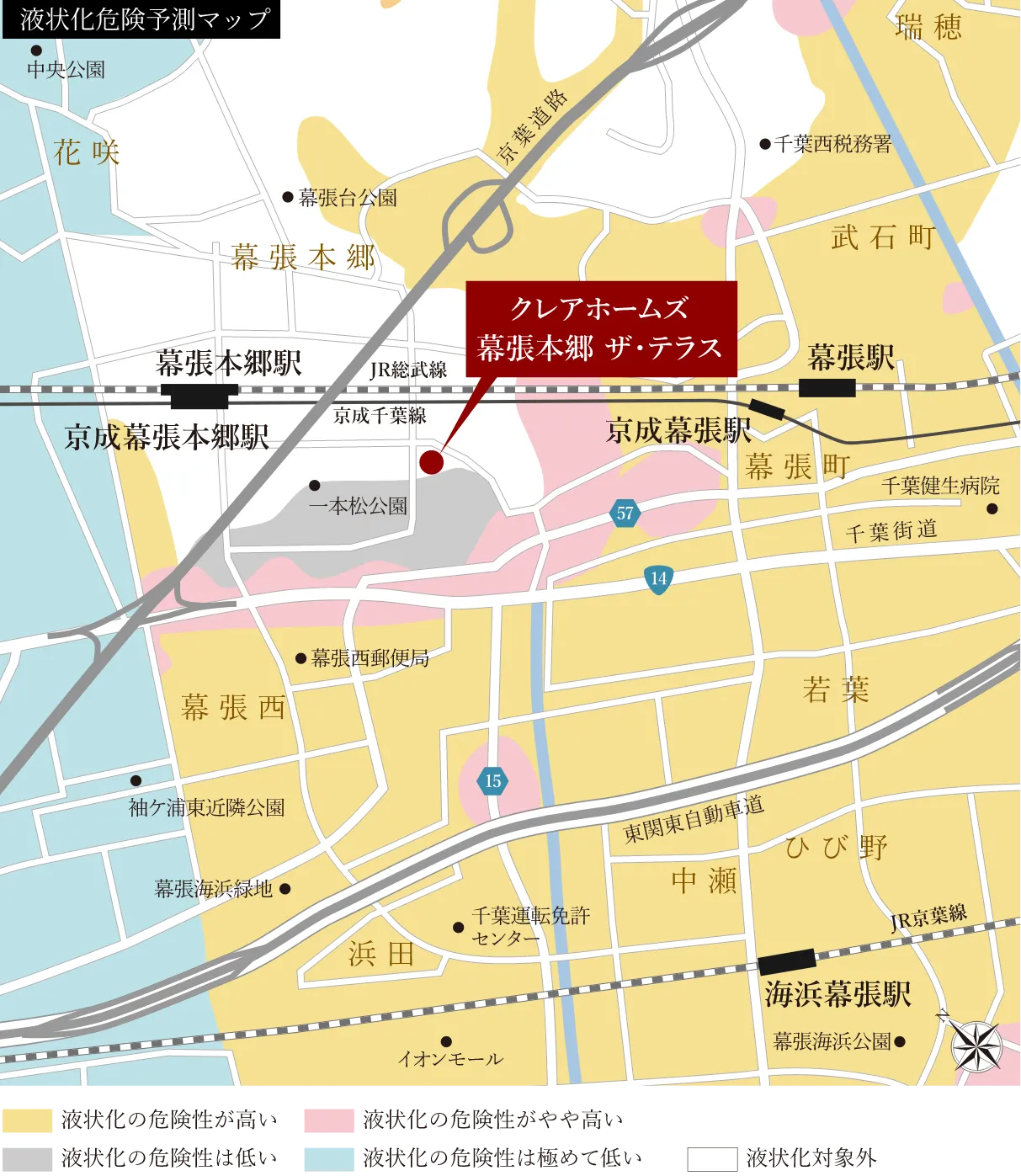 海に近い街だからこそ、大地の安心は大切にしたい。本物件が誕生する地は、液状化対象外という強さに支えられています。日常に寄り添い、未来を見据える選択です。※千葉市の資料に基づき描いたもので、災害時に被害がないことを保証するものではありません。