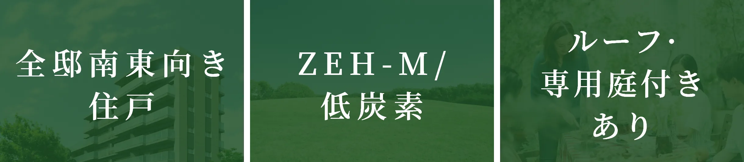 すべての住まいを南東に向け、やわらかな光を受けとめる。居室やバルコニーの横幅をゆったり確保したワイドキューブプランが、丘の上のテラスにふさわしいのびやかな空間を演出します。